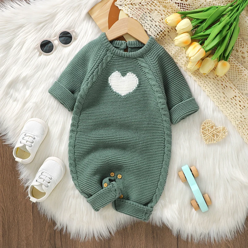 Newborn Baby Rompers Knitted Infant Girls Boys Jumpsuit Long Sleeve Autumn Kid Clothing 0-18M Overalls Fashion Solid Cute Loving