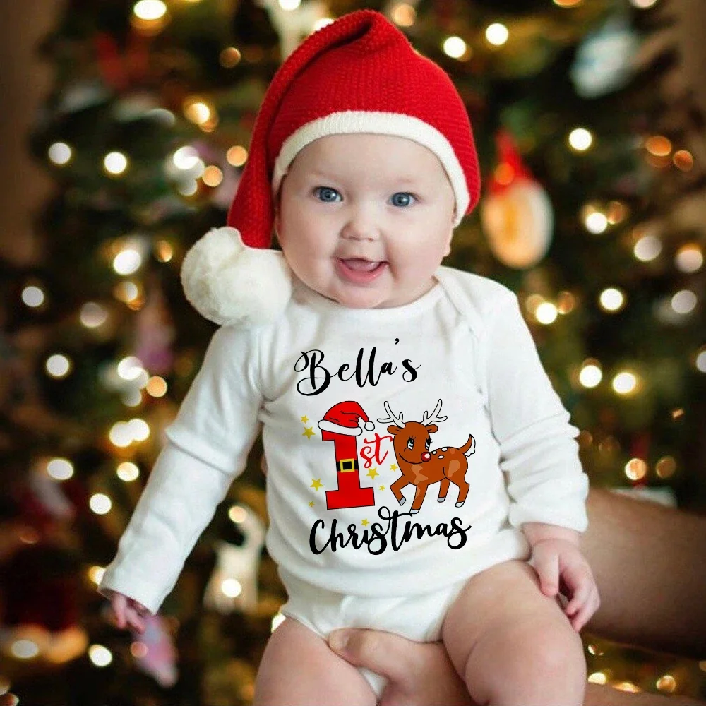 Personalised Baby First Christmas Bodysuits Custom Name Newborn Clothes Boys Girls Long Sleeve Jumpsuit Xmas Party Infant Outfit
