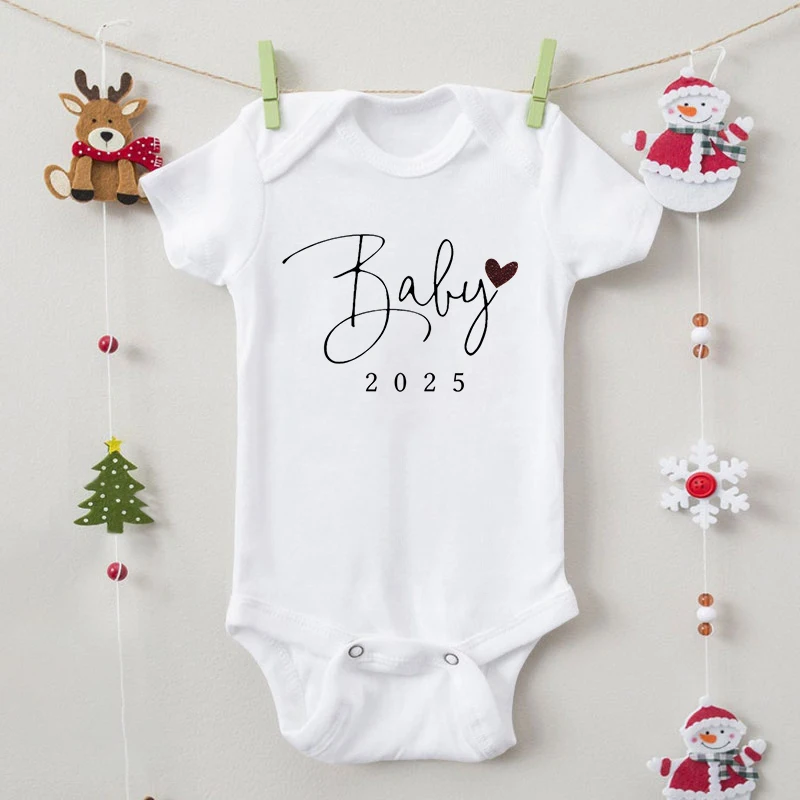 New Cotton Romper for Infant Boy Girl "Baby 2025" Funny Heart Pattern Onesies Coming Soon Gift Newborn Short Sleeve Bodysuits