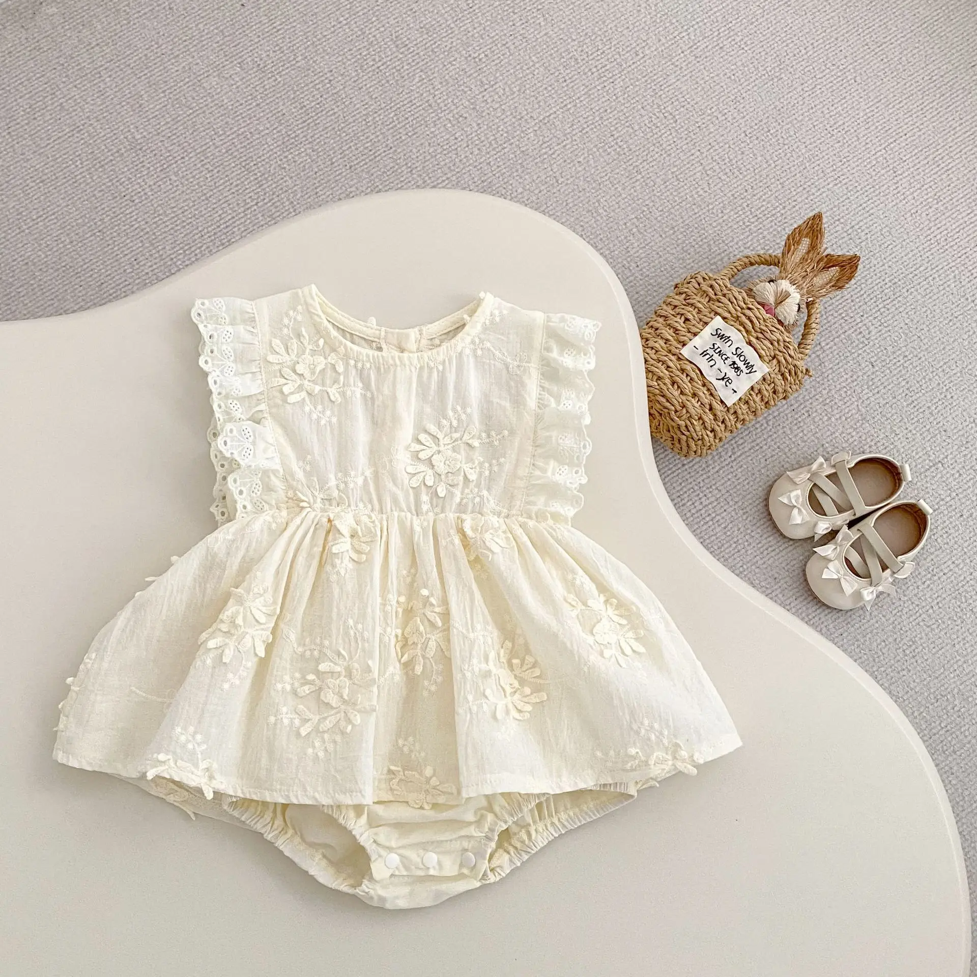 Summer new 0-3 year old baby clothing, embroidered lace flying sleeve princess skirt, cute baby girl jumpsuit
