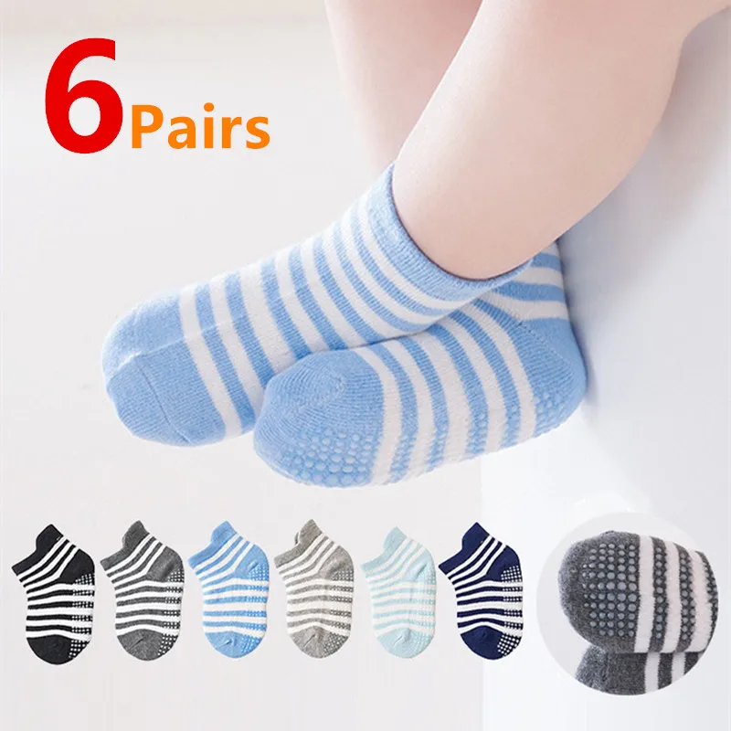 6Pairs/Lot Cotton Kids Anti-Slip Boat Socks Casual Baby Boys Girls Sock Floor Children Socken With Rubber Grips For 0-5Years