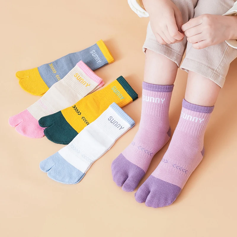 5 Pairs New Children Two Toed Socks Fashion Sport Thumb Sock Pure Cotton Letter Mid-tube Tabi Socks for Kids Student Boys Girls
