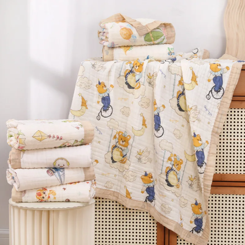 Environmental Breathable Newborn Baby Cotton Gauze Printed Muslin Swaddle Blanket 6 Layers Baby Bath Towel