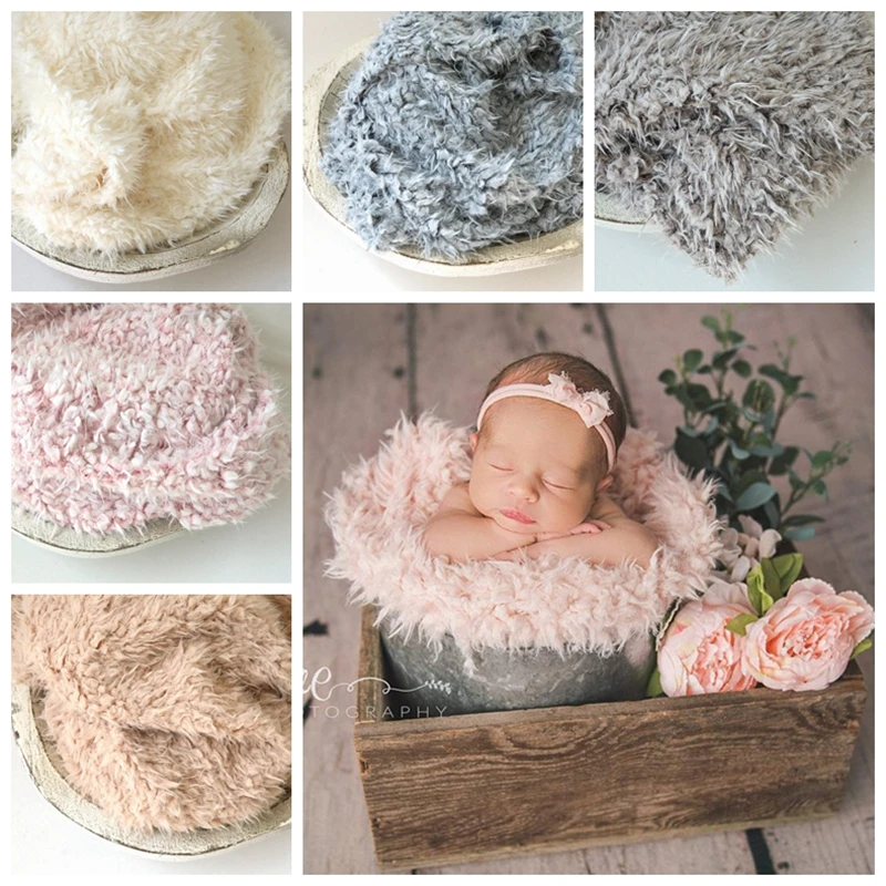 8 Color Soft Fur Fabric Nest Blanket For Newborn Photography Props Backdrop 80*60CM Baby Shoot Studio Accessories Basket Stuffer