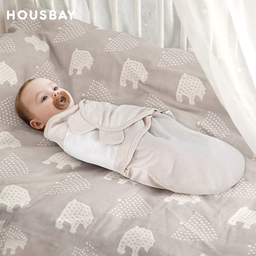 INSULAR Baby Cotton Swaddling Cloth With Caps Envelope Type Newborn Cartoon Envelope Anti-Startle Adjustable Bedding Item