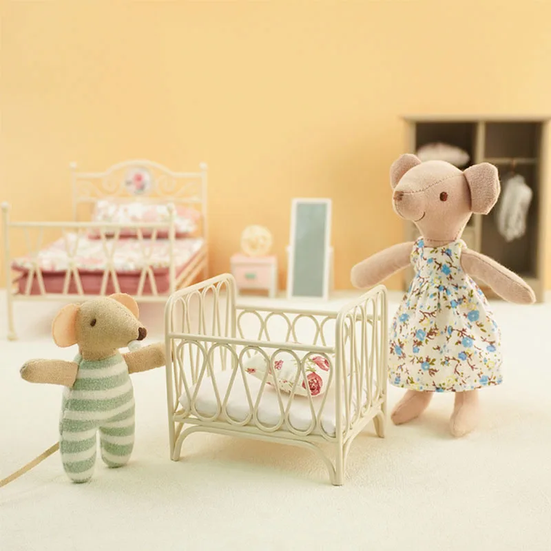 1:12 Scale Miniature Square Wrought Iron Crib Rectangular Bed Ornament Compatible with BJD Ob11 Dollhouse Home Furnishings