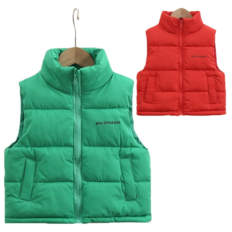 3-14 Years Winter Boys Girls Vest Fashion Letter High Neck Design Thick Keep Warm Waistcoat For Kids Children Down Coat