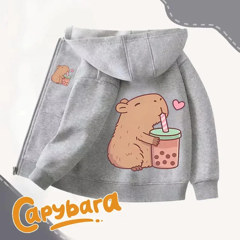 Capybara Zipper Hoodies Coats Girl boy Sweatshirt Clothes Autumn Winter Long Sleeve Harajuku Pullovers Casual Hooded Tops Gift