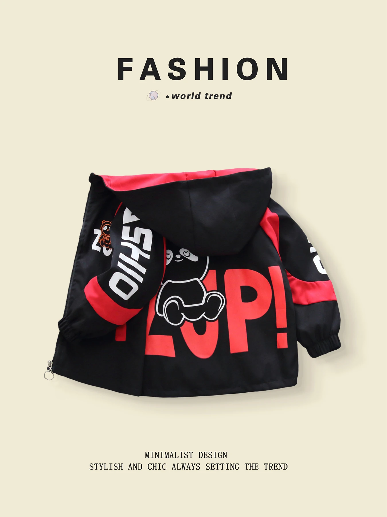 Boys' Fashion - Forward Spring - Autumn Outerwear (3 - 10 Y) : Hooded Jackets with Alphabet & Teddy Bear Prints