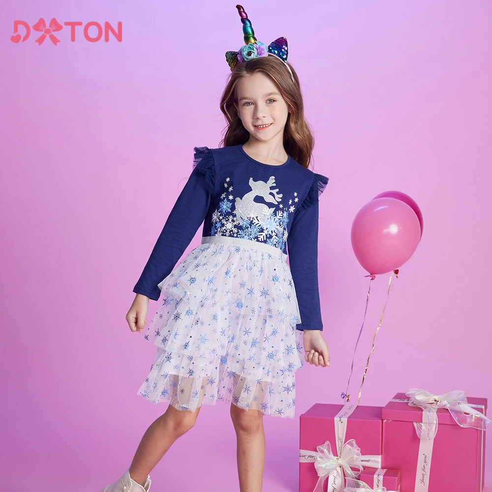 DXTON Christmas Party Kids Clothes Snowflake Winter Girls Princess Dress Elk Printed Children Dresses New Year Holiday Costumes