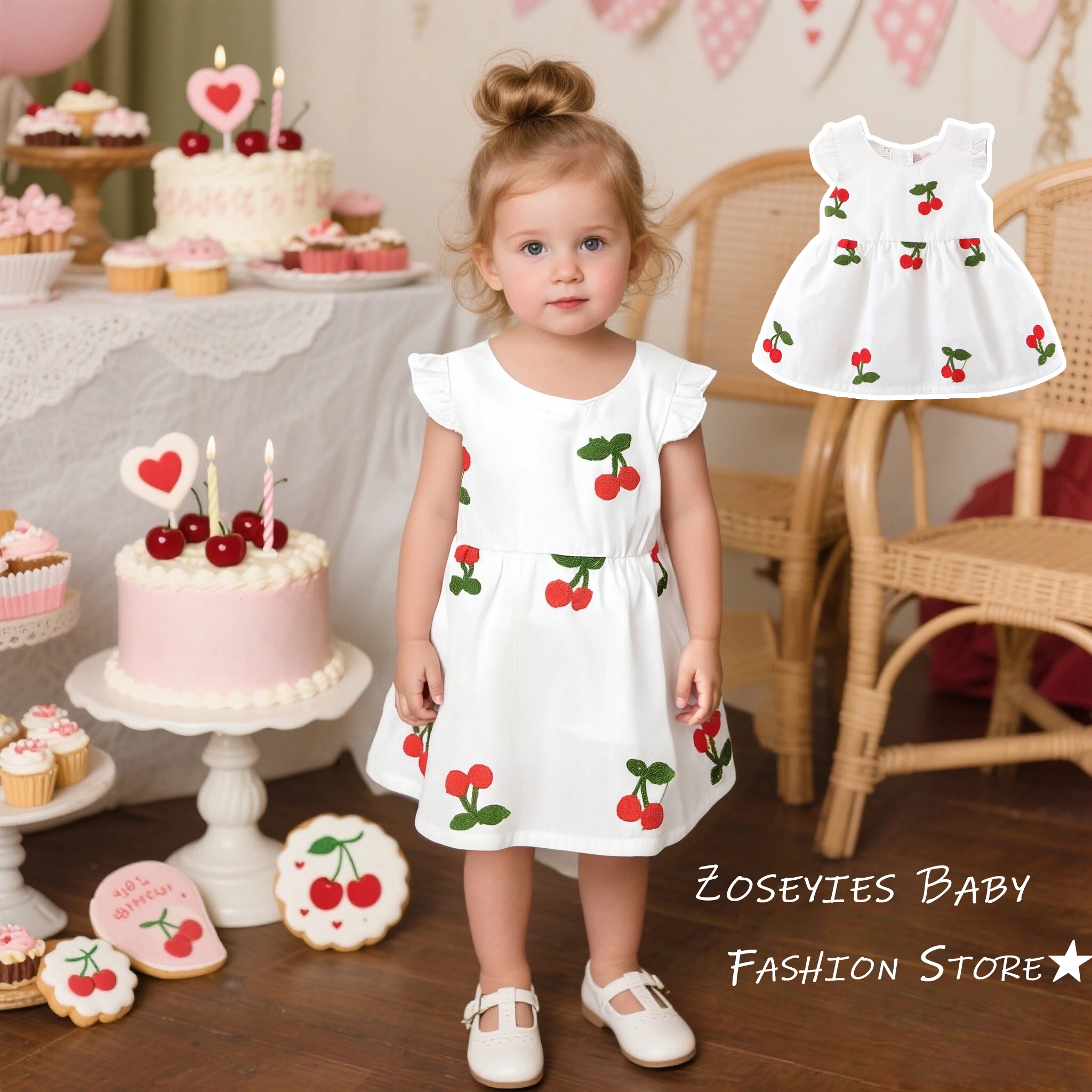 Baby Girl Dress Summer All-Over Print Cherry Cotton Girls Dress Adorable Baby Beach Dress Baby Girl Clothing