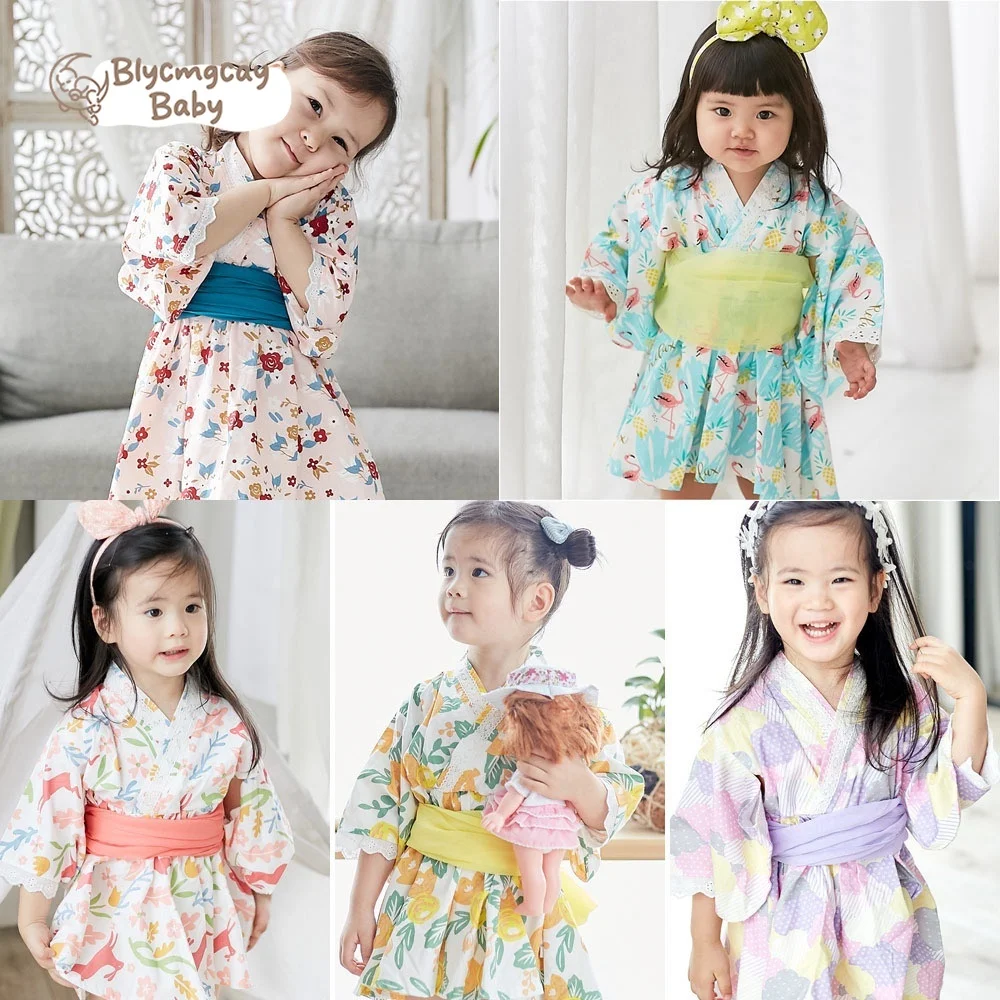 2-8 Years Girl Autumn Kimono Print Pattern Bathrobe Dress Japanese Girls Dress Kimono Dress