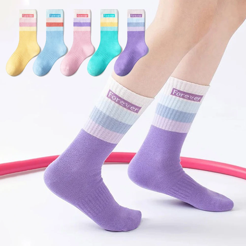 5 Pairs Children's Socks, Girls' Mid tube Socks , Autumn/Winter, Breathable Girls Students Rainbow Sports Socks