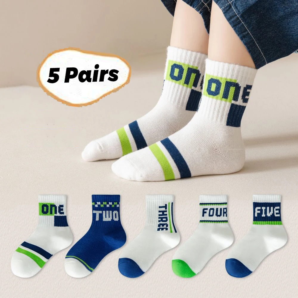 5 Pairs Children's Socks Autumn/Winter New Boys' Trendy Alphabet Mid Tube Socks Boys' Sports Student Socks