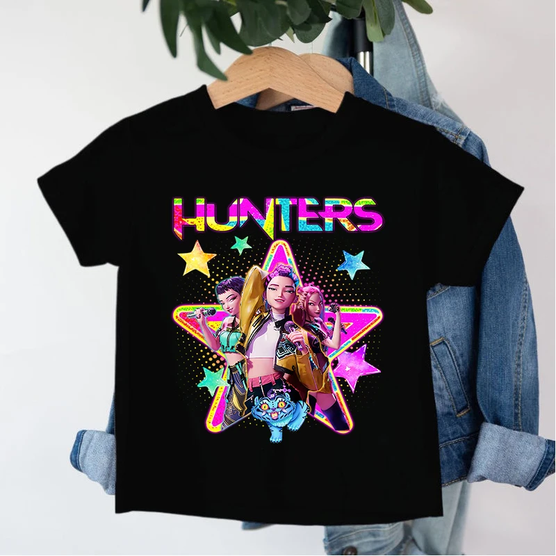 Toddler Girl Clothes Kpop Demon Hunters Cartoon Tee Shirt Funny Gift for Fans Harajuku Cool Kids T-shirts Summer Tops