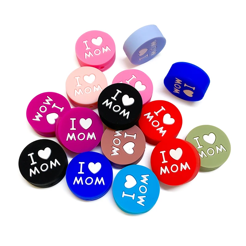 10pcs Love MOM Silicone Beads Kids Teething Toddler Toys Food Grade Silicone Teethers DIY Pacifier Toy Accessories