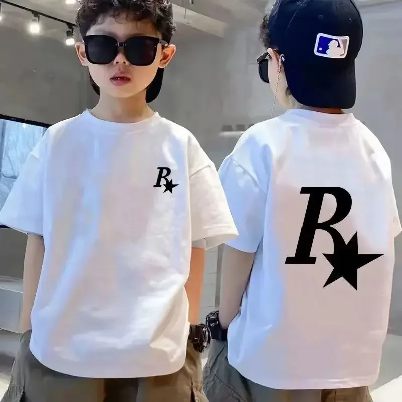 Luxury Brand 3-14y Kid Tees Teenager Summer Boys Girls Baby Cotton Printed T Shirt Short Sleeve Childrens Size Unisex Child Tops