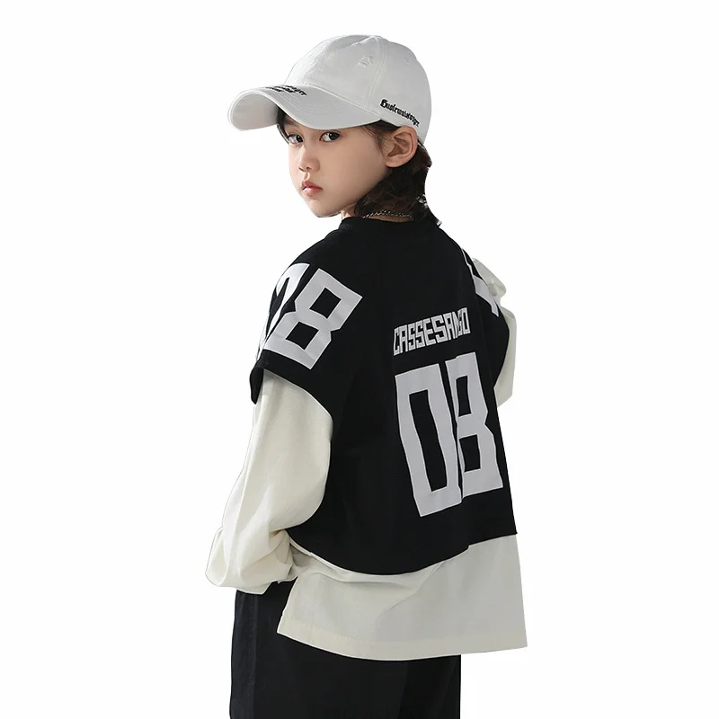 Big Boys Fake Two Piece Long Sleeve Sweatshirts Sports Streetwear Children Fashion Tee Top Outfits Teenage Kids Spring Clothes