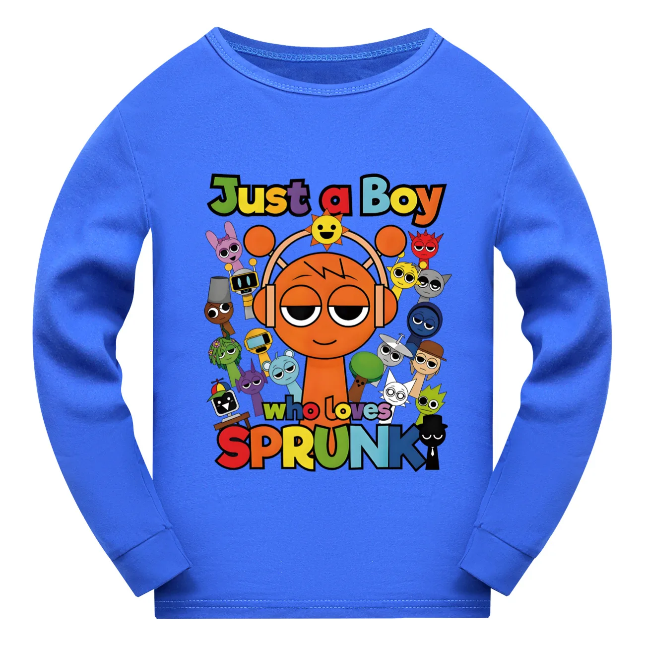 Sprunki Cartoon Kids Spring Long Sleeve T Shirt Game Incredibox Baby Boys Fashion O-neck Tees Clothes Teen Girls Cute Tops 2-15Y