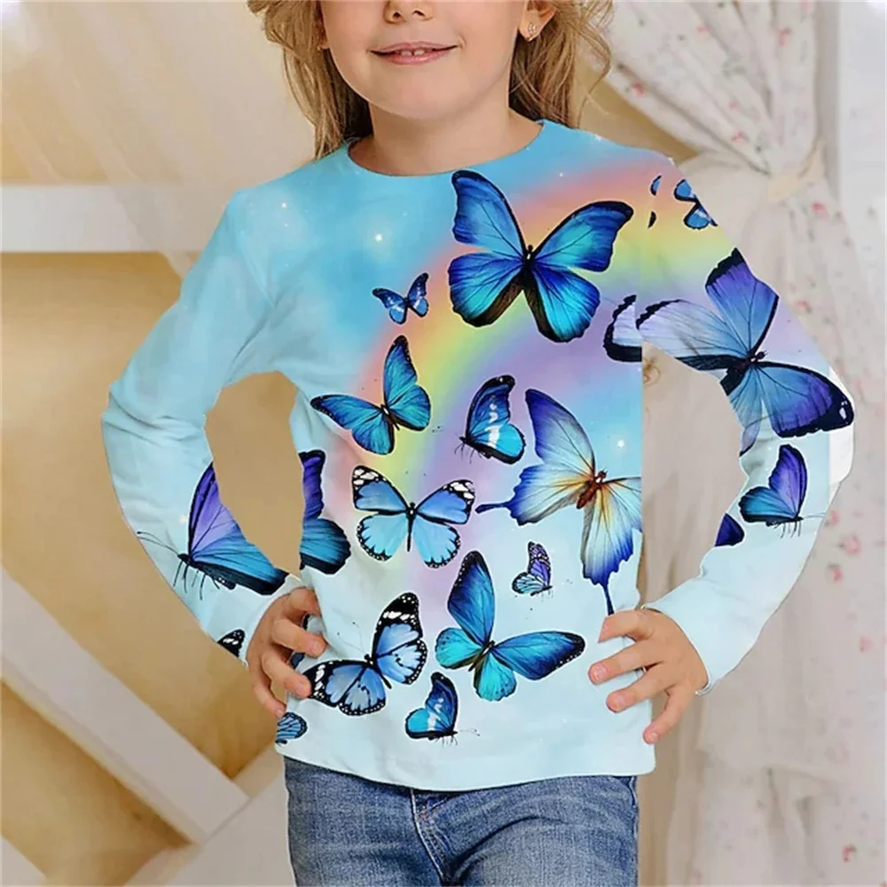 2023 Autumn Clothes Kids Children's Things for Girls Clothing 4 to 14 Years T-Shirt Youthful Teen Long Sleeves Top Tee Butterfly