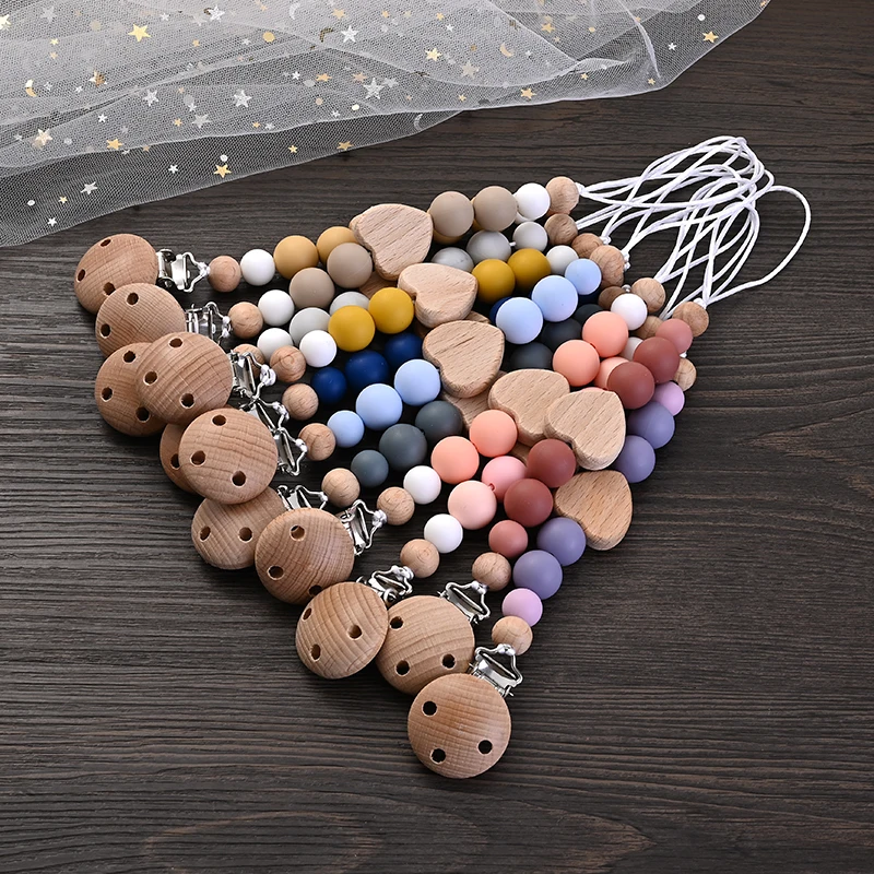 New Beech Heart Beads Baby Nipple Chain Wooden Round Pacifier Clip For Silicone Teething Beads Soother Chain Baby Care Toy