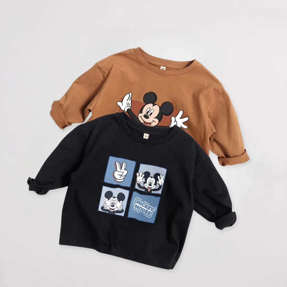 Popular Brand Kids Long Sleeved Mickey T-shirt Autumn Clothes Children's Casual Bottoming Shirt Tops Crewneck Casual Blouse NEW