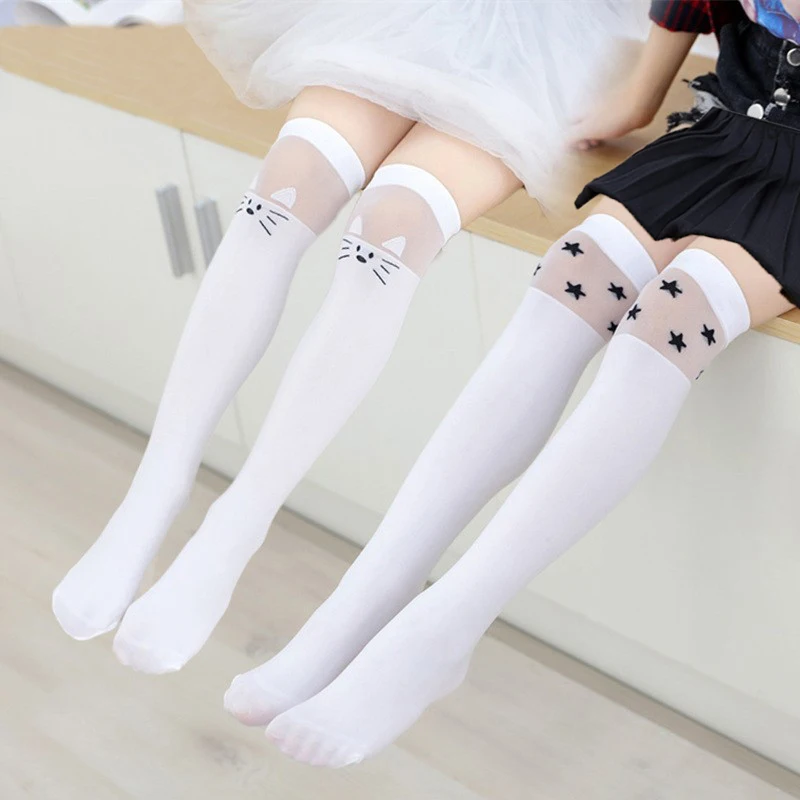 White school princess girls socks Summer Spring Over The knee high socks cartoon star/heart/stripe Cartoon design long stockings
