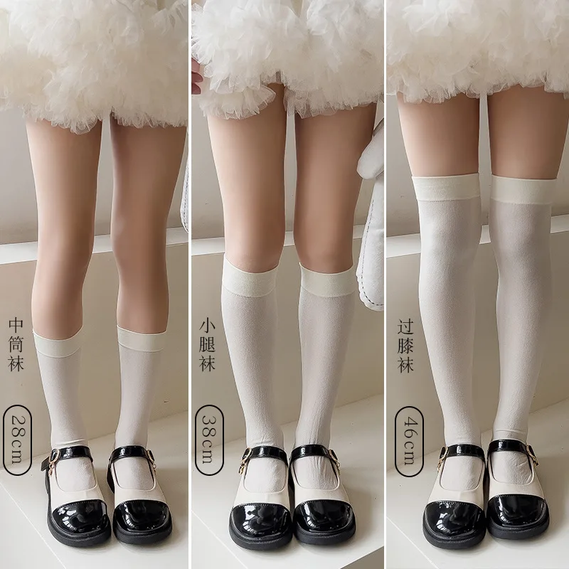 2pairs Nylon Over The Knee High Kawaii Student Stockings Lolita Summer Silk Knee Socks Tube Jk Girls Long White Black Half Socks