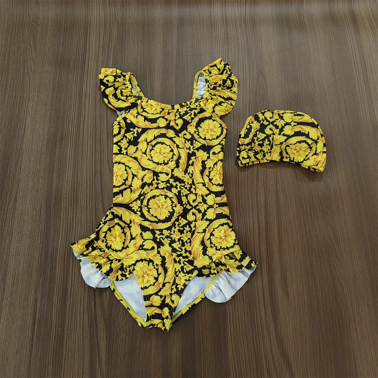 2025 Girl Swimsuit Summer golden flower bodysuit Special Offer Children's Swimsuit factory Wholesale