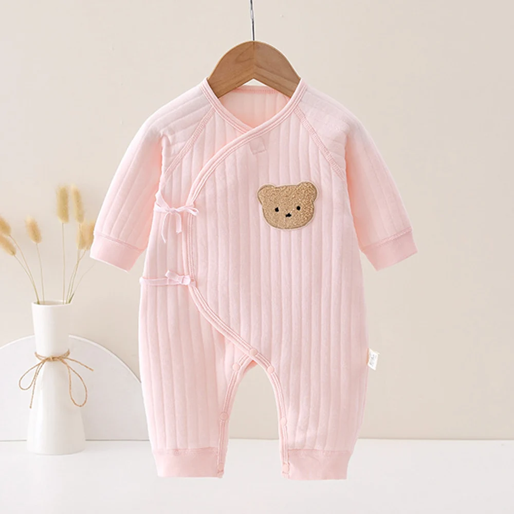 Baby Fall Winter Romper Long Sleeve Quilted Solid Color Warm Newborn Clothes 0-6 Months Unisex Baby Jumpsuit For Boy Girl