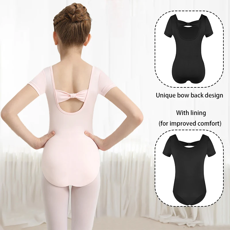Girls's Ballet Leotards Toddler Short Sleeve Back Bow Ballerina Leotard with Full Front Lining for dance practice  Read more