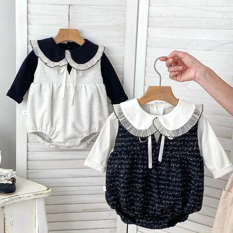 2025 New Autumn 0-24M Baby Girl Clothing Infant Baby Girls Jumpsuit Long Sleeved Solid Color Knitted Toddler Baby Girl Romper