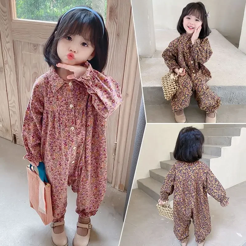 Kids Clothes Autumn Spring Children Girls Cotton Jumpsuits Single-Breasted Cute Floral Chic Baby Overalls Soft Loose Trousers  Read more