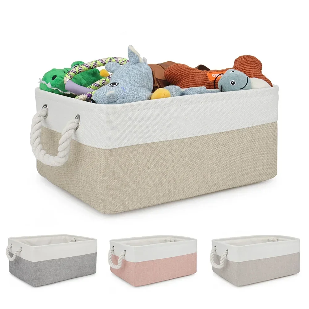 Folding Linen Fabric Storage Basket Multi-functional Sundries Storage Bag with Handle Organizer Box for Underwear Sock Baby Toys
