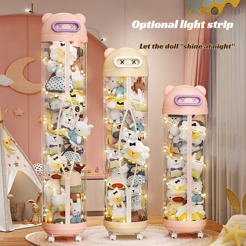 Large Capacity Plush doll Storage Bucket With Wheels Transparent Storage Bucket Zipper Kids DIY Plushies Toy Display Bucket