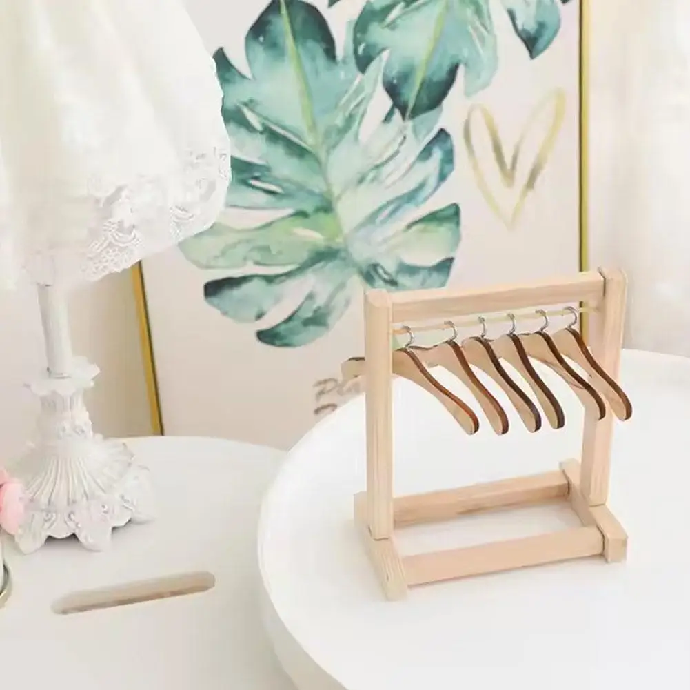 17cm Doll Hanger For Labubu Wooden Clothes Storage Hanging Rack, Cute Toy Clothes Organizer Plush Toys Decoration Accessories
