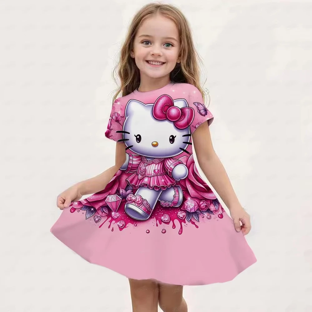 Hello Kitty Kuromi Summer Dress Girl Dresses Children Dresses Kawaii 3d Cartoon Print Cute 2025 Girl Clothing Vestidos