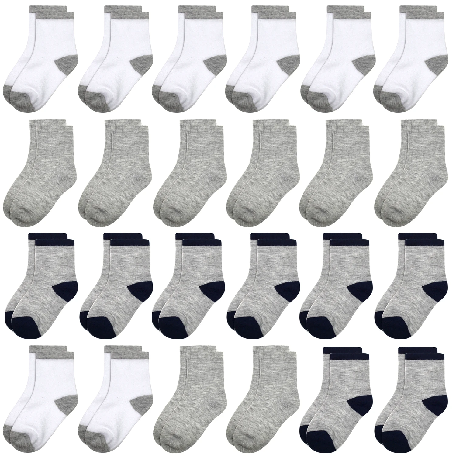 24 Pairs (Boy Toddler Baby Crew Socks (1-14Years Old) Soft breathable Socks For Toddlers kids Boys Girls