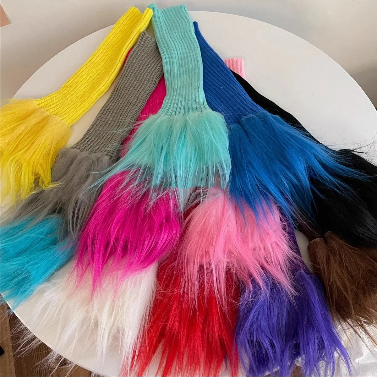 Stacked Stocking Spicy Girl Millennium Style Hairy Knitted Splicing y2k Subcultural Socks Warm Autumn/Winter Mid Tube Socks
