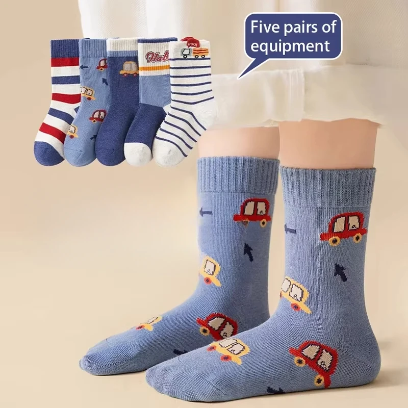 5Pairs Soft Boy's Mid-Tube Socks Dingdang Car High Elasticit Fashionable Winter Clothes Children's Fashion of Animals 1-14Years