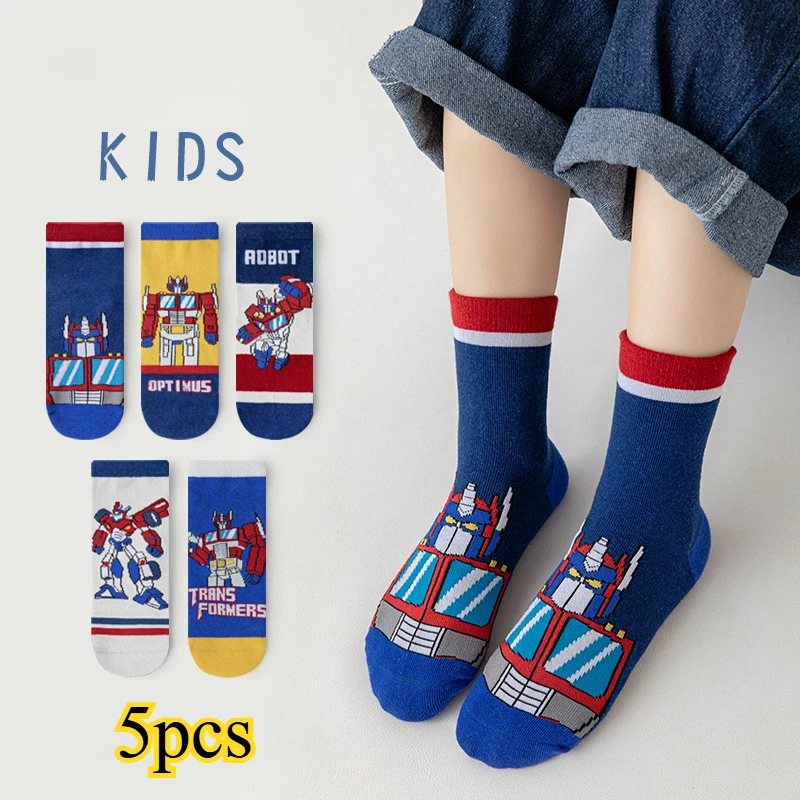 Transformers Socks Movie Optimus Prime Pring and Autumn Breathable Combed Cotton Mid-Tube Socks Children Cartoon Socks