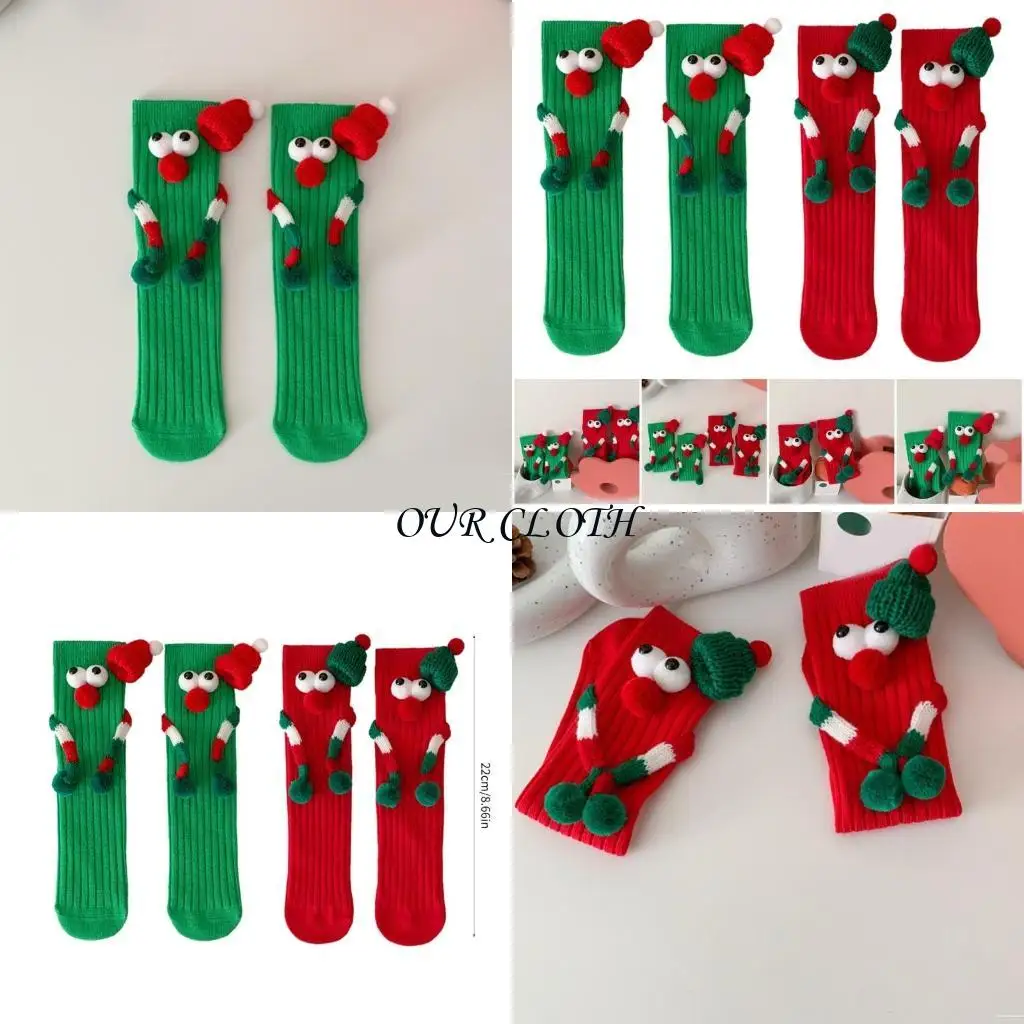Funny Christmas Hand Socks for Kids Cartoon Big Eyes Novelty Middle Tube Socks Hosiery Holiday Party Gift Y1AC