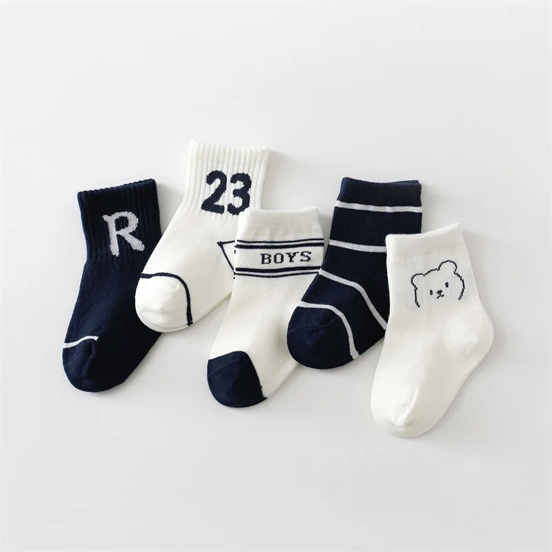 5Pairs/Lot Spring Children's Socks For Girls Boys Cotton Print Letter Toddler Baby Short Sock Striped Sport Student Kids Socks