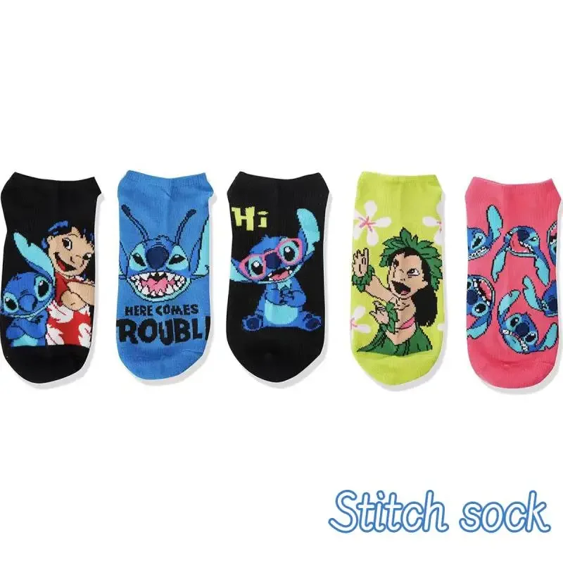 5pcs Lilo & Stitch and Lilo Pelekai Printed Combination Sock Set Summer Sweat Absorbent Mesh Breathable Short Cotton Socks  Read more
