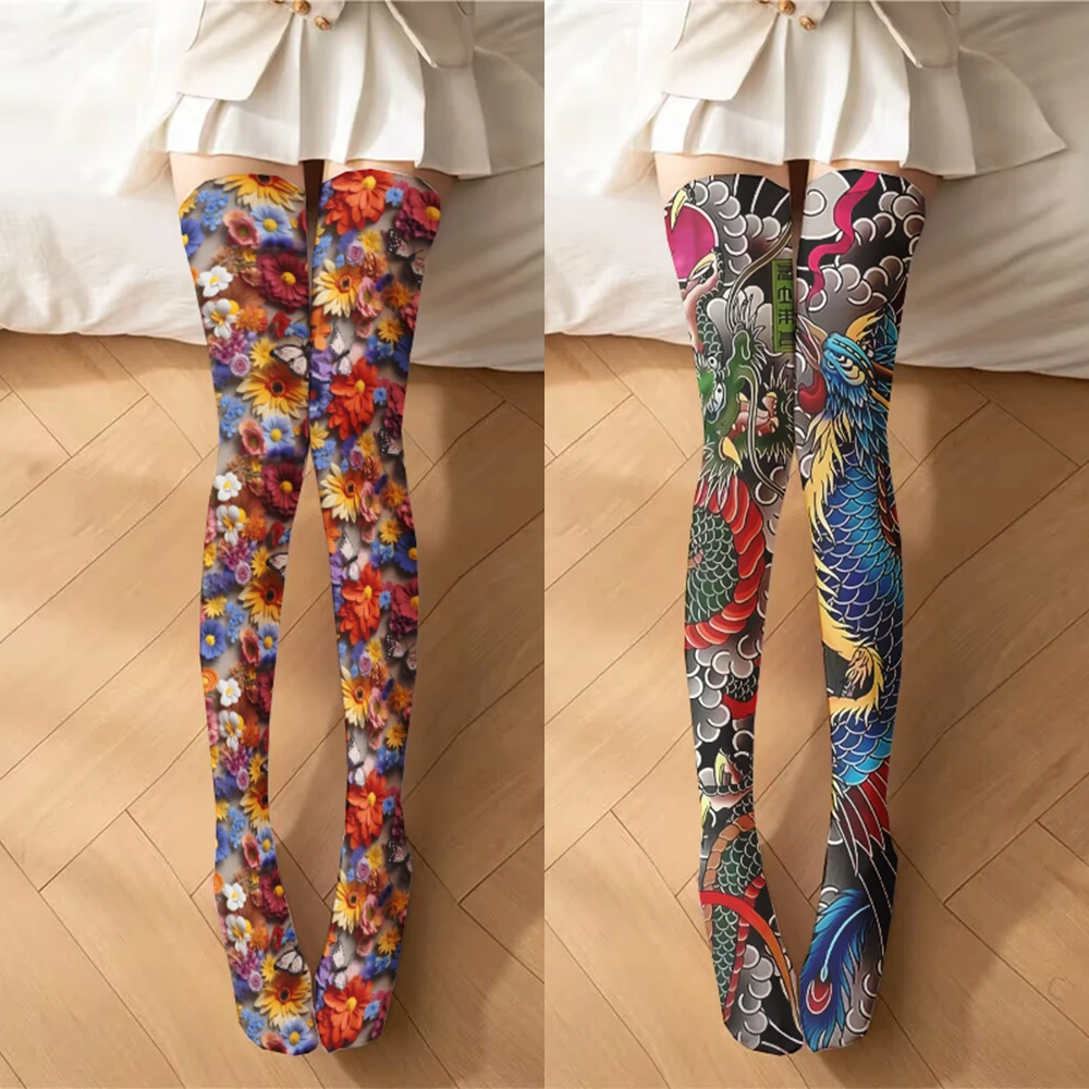 Newly designed tattoo thigh socks, fashion printed stockings, loli girls, Japanese sexy stockings, thin models, multiple sizes