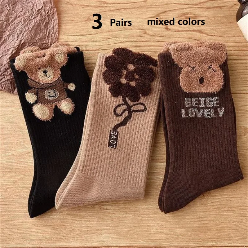 1/3 Pairs girl Cartoon Bear Mid Tube Socks Fashionable Cute Three-Dimensional Printed Letter Socks Soft Comfortable Casual Socks  Read more
