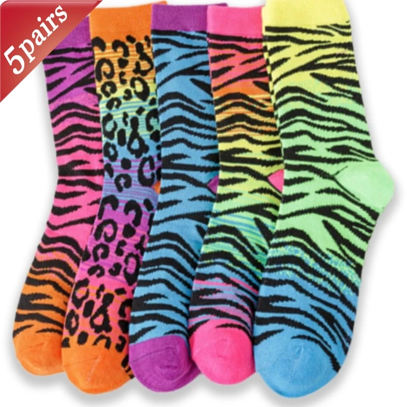 5 Pairs UNISEX Leopard Print Personalized Fashion Breathable Thin Funny Sweat-absorbing Spring Simple Socks For Girls Wholesale