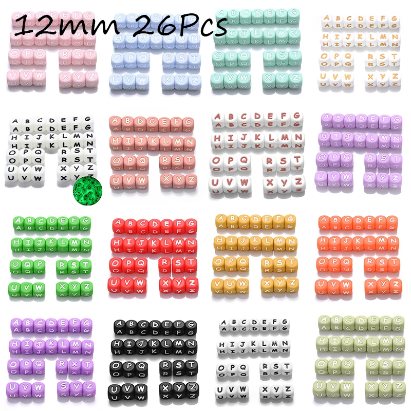 26Pcs Silicone Letter Beads 12mm Colorful Alphabet Silicone Chewing Bead for Pacifier Clip Chain Teether Accessories BPA Free