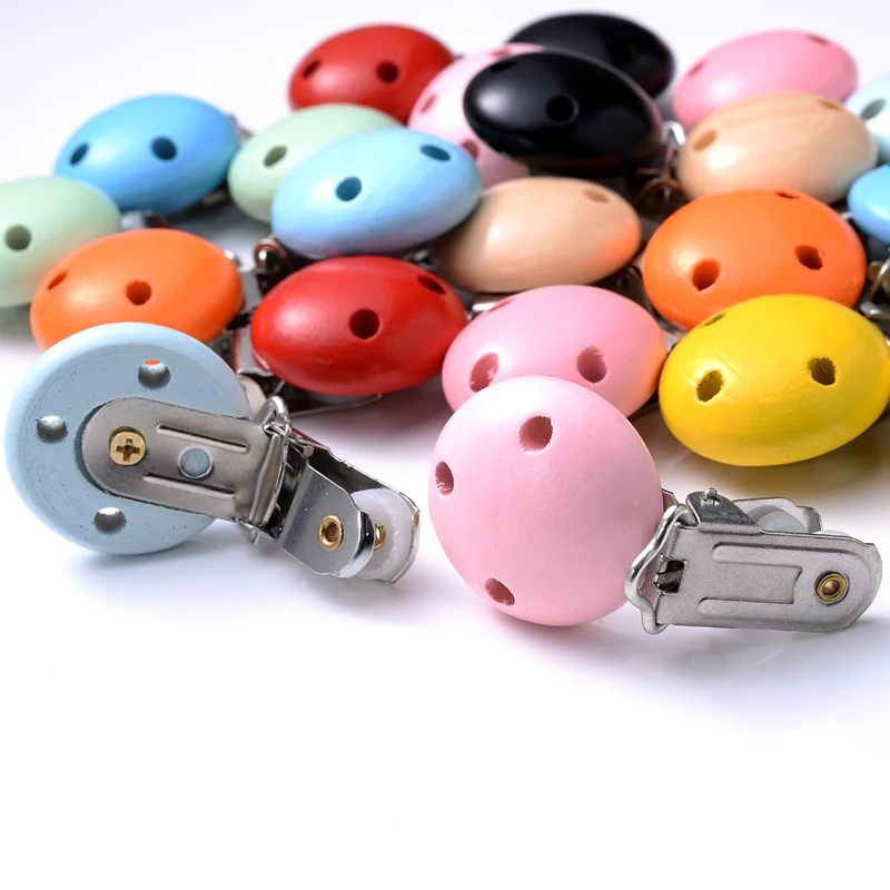 10Pcs Wood Clips Round Shaped Dummy Holder Baby Pacifier Clips DIY Teething Pacifier Chain Accessories BPA Free  Read more
