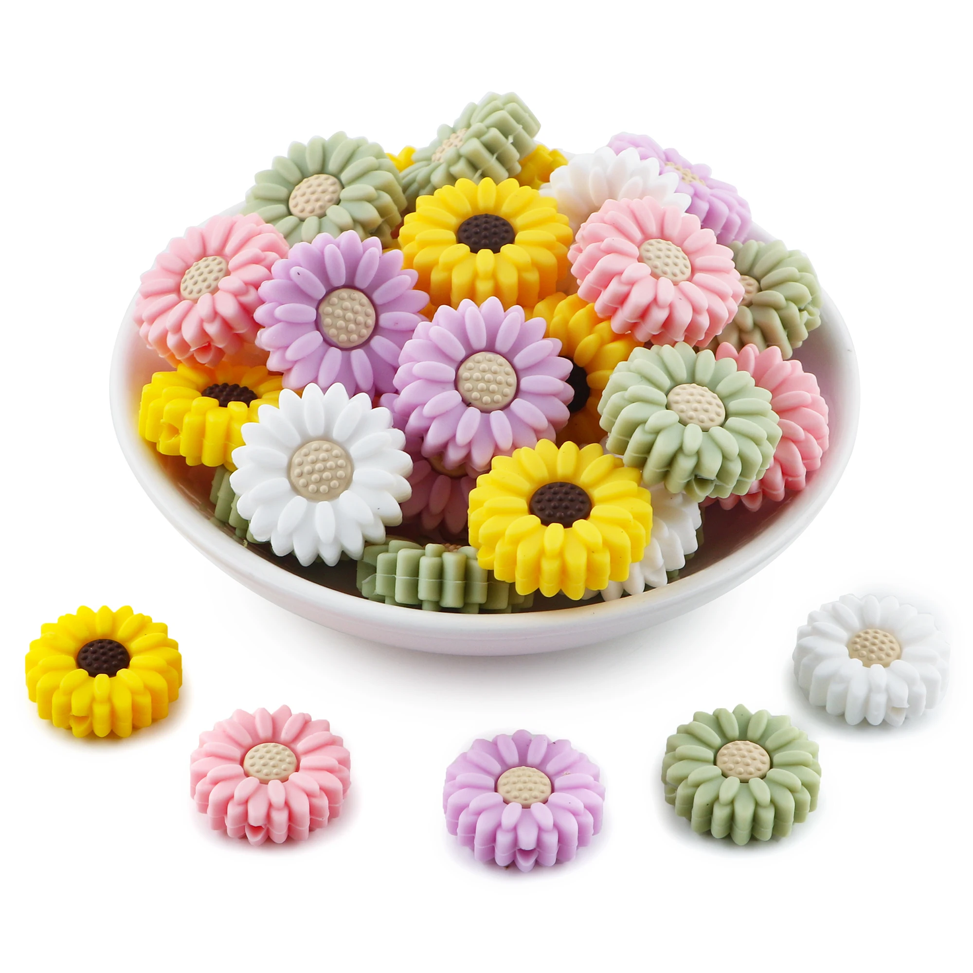 Kovict 5/15Pcs Daisy Sunflower Mini Silicone Beads DIY Pacifier Chain Bracelet Necklace Handmade Accessories For Jewelry Making  Read more